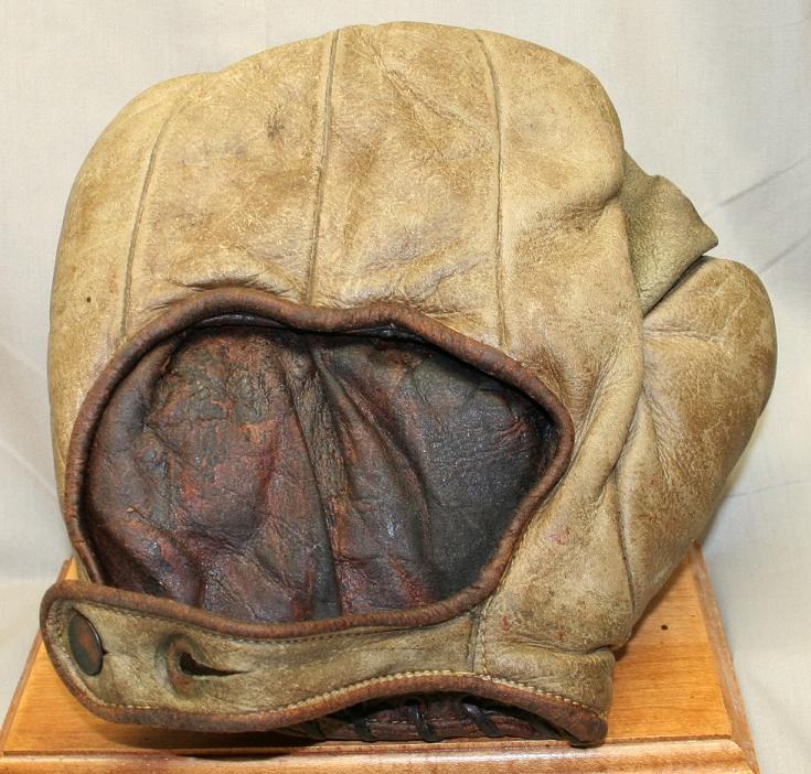 This nice looking fielders mitt is from an ebay auction. It is pretty similar to the preceding examples. I was trying to determine the manufacturer from the worn patch. I am not really familiar with early glove patches. I was hoping it would be discernible enough to be a "Victor" model. The patch seems to be red lettering on a white background. I don't recall "Victor" having that color scheme. The only other choices in my limited knowledge would be either a "Diamond" brand or "Edw.K.Tryon". I wonder if anyone else has ideas.