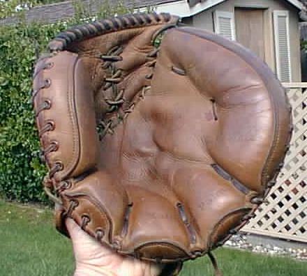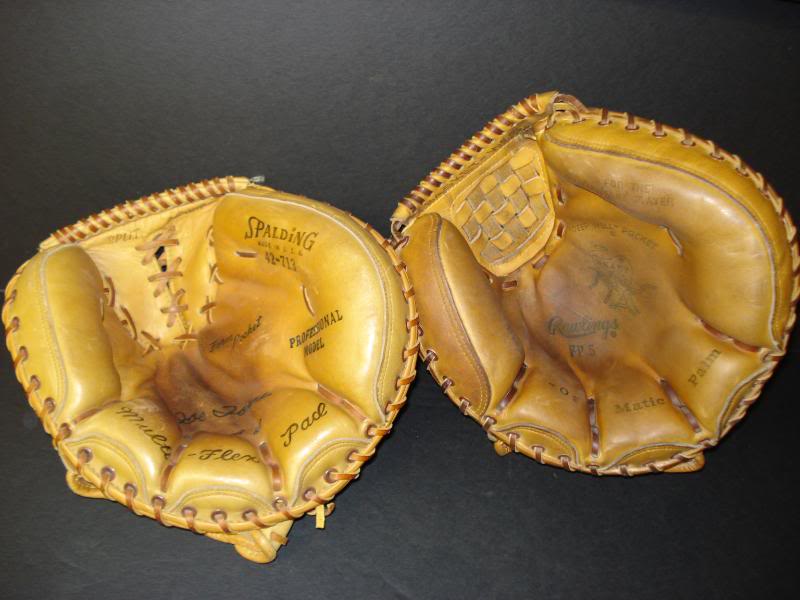 I guess around 1963, Rawlings introduced the flex-o-matic heel design in their gloves and mitts. This catchers mitt with the flex-o-matic palm that just closed on ebay looks particularly funky to me. It is a "Dick Bartell" model