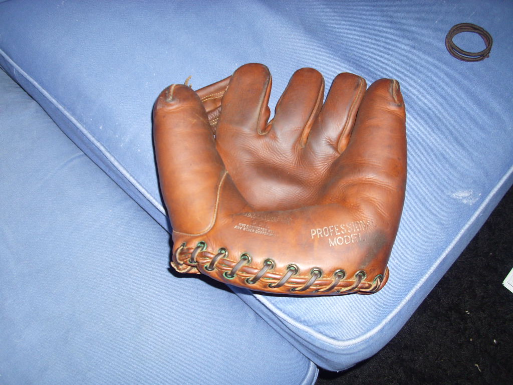 I agree with Brett; it is a really well made glove. I have the same model and it's one of my favorite 1940's gloves. A lot of gloves of varying quality were stamped "Professional Model" over the years, but this one really has the qualities of a pro-type glove of the era. It is big, made of great leather, has rolled piping and welted seams. Nice pick up! Here is its twin: