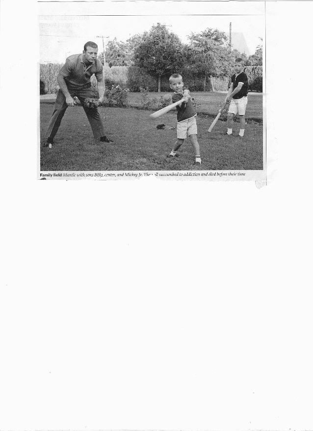 Family Field: Mantle with sons Billy and Mickey Jr right. Wonder what glove Mick has. Also a mitt on the ground. Which son is in the Phillies Glove Ad? What would be the year of the ad and also this picture?