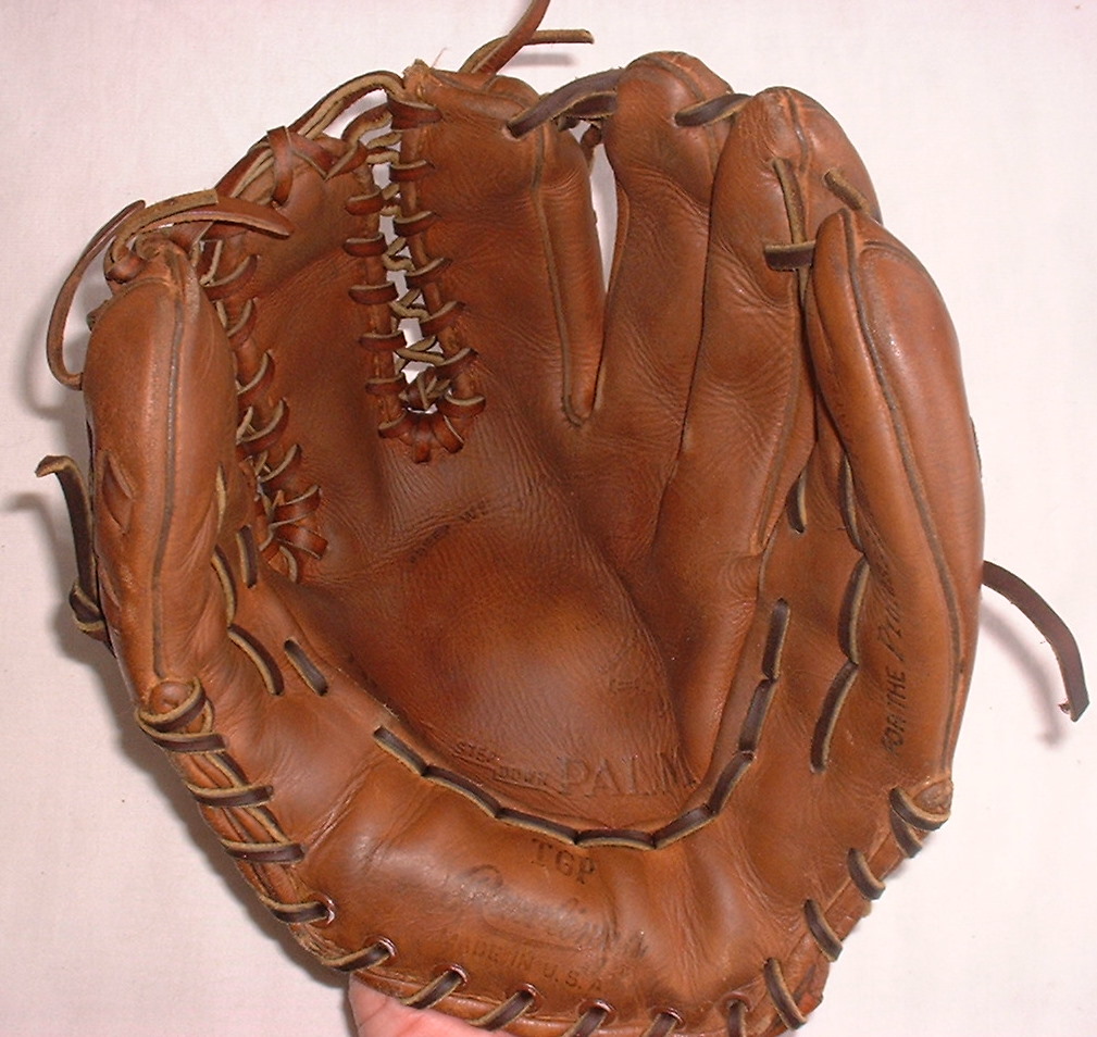Note the simple lacing below the web as a palm crotch reinforcement on this early 1950's Mort Cooper model.