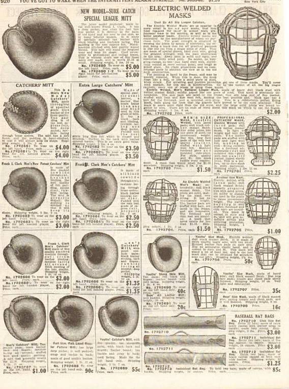 Here are some 1913 catalog pages from the Frank I. Clark baseball goods sold through Charles William Stores.