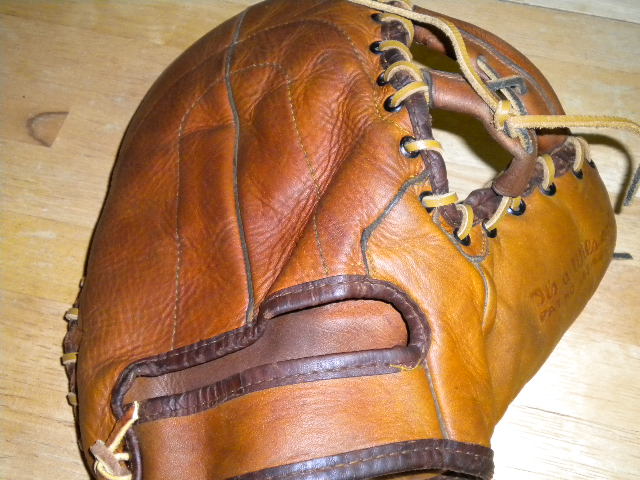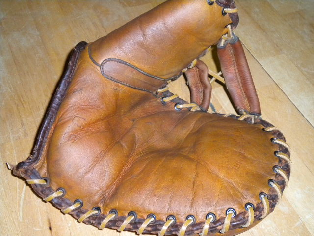 I received this glove over the weekend, picked it up on ebay. It is a Wilson Army model base mitt. Can't read the model number very well, is a "5--PST", middle number looks like a 6 or 8, last number looks like a 3. It cleaned up very nicely using Horseman's One Step. A nice addition to my WWII Army glove collection.