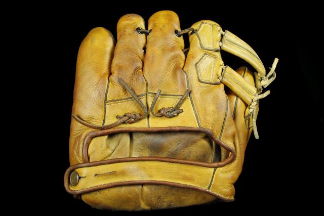 Below is a 1936 catalog illustration of a Goldsmith base mitt with a rolled lace web. Pretty cool and possibly influenced by first baseman Hank Greenberg of Detroit, who was tall but still benefited from the extra reach the mitt afforded.