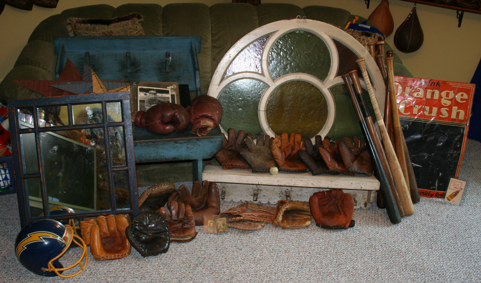 Day four - 1920's Wright Ditson fielders glove with tennis player patch, 1920's Rawlings 1B mitt model FB, Spalding 1091 Colavito (for those that like this era, this one is drool worthy - very clean), 1960's Spalding top line catchers mitt, 2 Spalding bats from late 20's/early 30's - a Smead Jolley and a willow fungo bat. Will write more when I get some energy. Here's a picture of what my wife and I picked up at Brimfield so far - she wants to go back tomorrow.