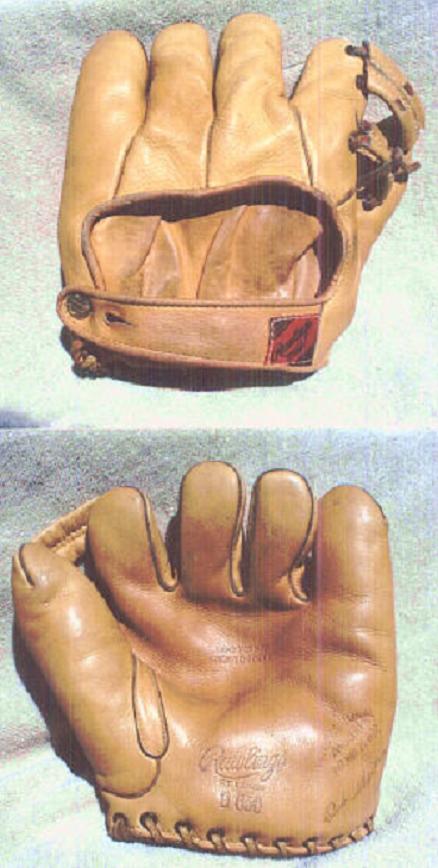 Reader sent email on this glove with pictures. I could not find this model, either a Rawlings G300 fielders or name "Dib" Williams listed in any of the catalogs I have. So maybe we have a new name to add to our gloves found list unless someone has already run across one of these.