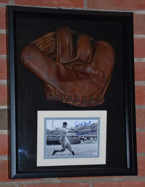 Here's what the glove looks like on my wall. The autograph reads "Dick Groat Duke Univ. 1952"