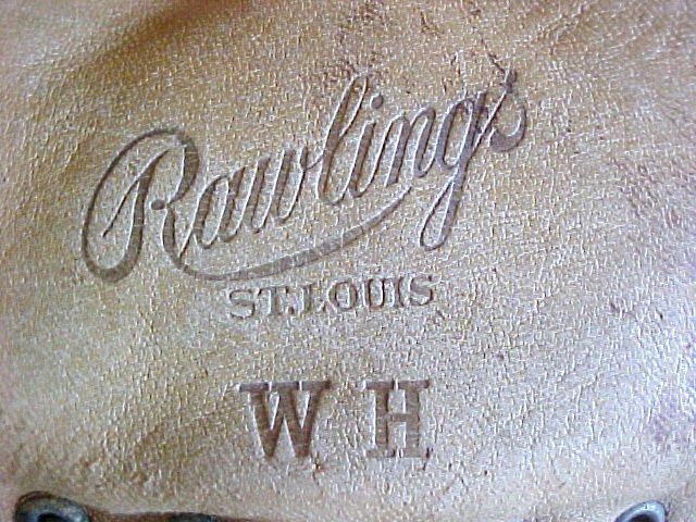 I just picked this adoult size Rawlings glove up for my collection and was hoping somebody could give me some info on it, I would like to know what year it was made and what does the initials MF mean under the Rawlings name. The initials appear to have been put on at the factory. The glove is just in incredible condition with just signs of very light wear. Also what would you think the value of this glove is. Any help would be appreciated.