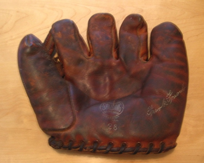 A Nice 1940 Spalding "Frankie Frisch" model 128 glove sold on ebay for $128. The glove has been played some but still retains most of the silver stamping. Well built and fairly expensive in its day.