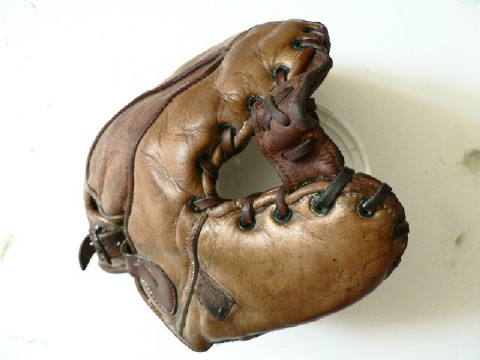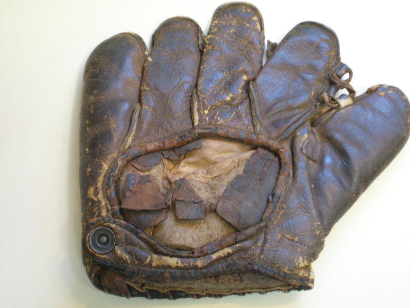 A 1900's Spalding crescent pad glove sold for $1800 on ebay. In decent shape with the seams, stitching and lining intact.