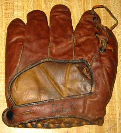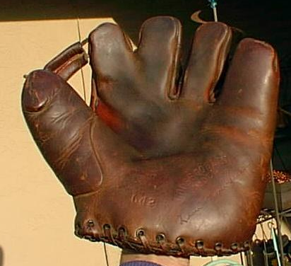 A 1940's glove of unknown mfg. sold for $107 on ebay. What sold the glove was the unique webbing similar to a "Rainey Trap" web. There looks to be an endorsement in the pocket but I couldn't make it out. Pretty cool looking glove.