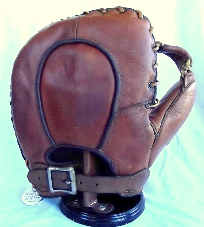 A 1930-40's Wards "Lefty Grimm" model sold for $100 on ebay. Great eye appeal with deep markings on the front. Stylish design with sturdy buckle back and partial tunnel loop web.