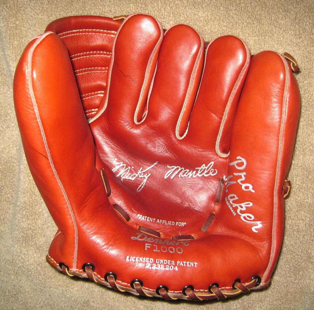 Another nice glove from the seller of the OK glove above. A Denkert "Mickey Mantle" glove and box sold for $787. Glove looks to be in unused condition. One thing I like about the Denkert made glove and the various retail brands they supplied is the classic Mantle endorsement across the whole face of the glove. This one is right up there if not the best.