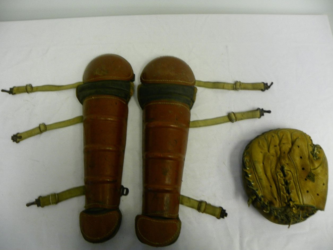 Set of early equipment including a crescent catchers mitt, ball, mask and pants sold on one bid at $500.
