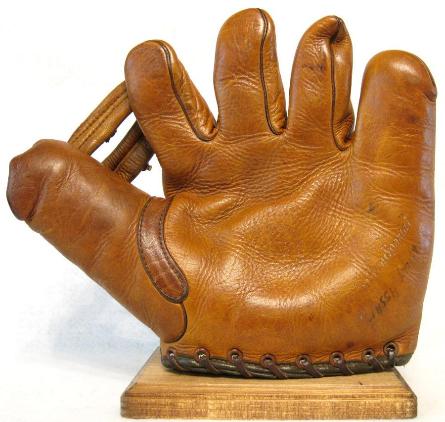 Second is a 1930's Reach glove that sold for $197. It has "Home Run Special" stamped on the heel but no "Babe Ruth" endorsement. Some Canadian made gloves omitted the endorsement, possibly for legal or contract reasons. I owned a Canadian Spalding model MO that should have had the Ruth endorsement but it was also missing.