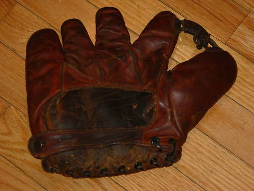 After one week gone by, I chose this glove as the "buy of the week" at $30. I really liked the MacGregor Goldsmith "Les Fleming" model at $26, but chose this glove because it displays the classic Latina inventions and was more of a top of the line model. I missed the D&M Babe Ruth glove from last month, so if anyone has a favorite that I missed this first week, please post it!mikesglove wrote:Rawlings"Gene Woodling" PM1 3-finger glove in good condition for $30 on ebay. Nice mid 50's model featuring the "Wrist Snugger" and "V-Anchored" web. Cloth patch in great shape as is the inner lining. A good deal for the winning bidder