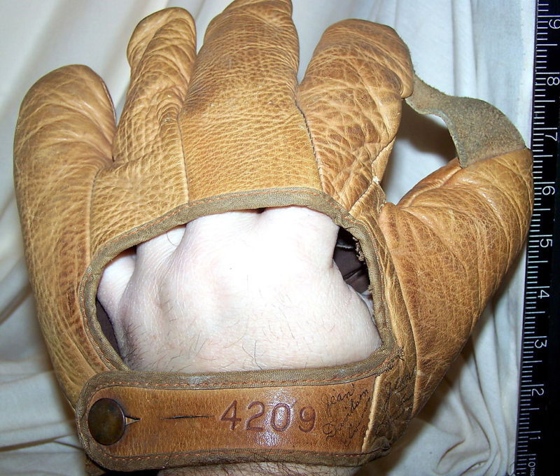A 1" web Wards brand glove sold for $100 on ebay. In nice shape overall with some of he original piping and stitching color still evident. I haven't seen a model number on the wrist strap before, if that is what the 4209 refers.