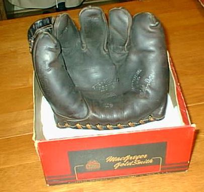 A nice 1950's Spalding "Sal Maglie" model 1061 sold for $25 on ebay. Top of the line in its day. Pre-formed pocket lacing. Diagonal lacing on the thumb is part of the V-Anchored web, a sure sign of a quality made glove.