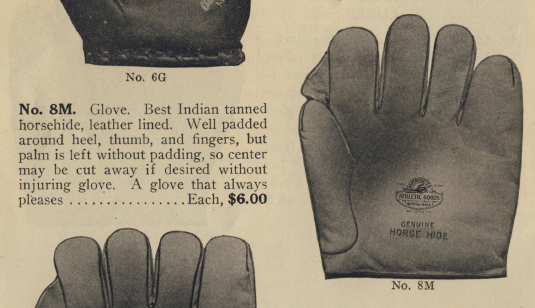 mikesglove wrote:A 1915-20's Horace Partridge 1" web glove sold for $456 on ebay. the glove itself is in pristine condition with nice markings in the pocket which are pretty rare with this type of white leather. The glove also features a variation of the Stall & Dean patented pocket. The circular stitching inside the wrist opening defines an area where the padding was reduced to more quickly form a pocket on the face of the glove. Also, a great cloth patch and only a minor flaw in the inner lining.