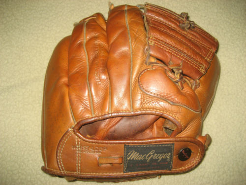One of my favorites, an early 50's MacGregor 3 finger glove with reverse button wrist strap. Only thing missing is the "Spider Web". The GB23 "Richie Ashburn" model sold for $142 on ebay.