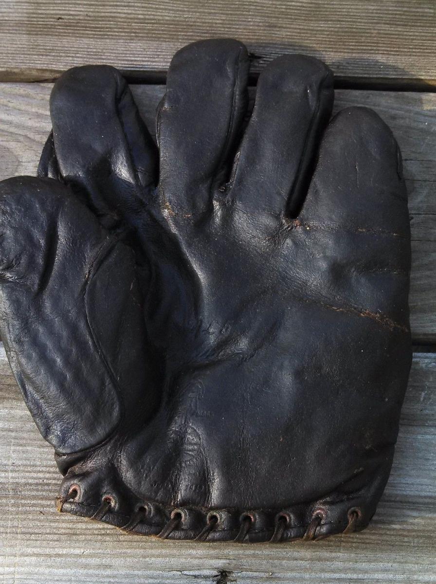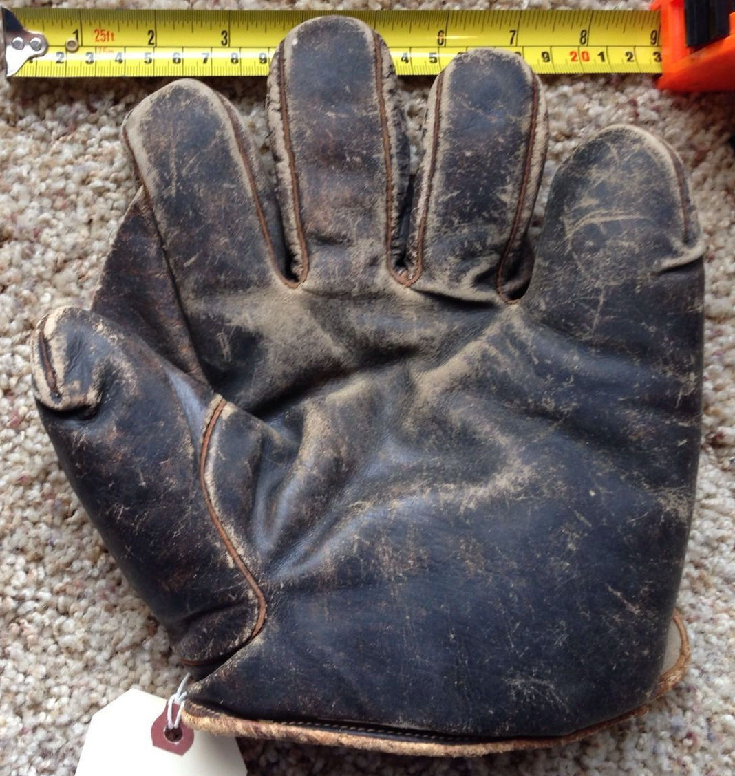 Pretty nice find at $51 and good timing since it was up for only 10 min. or so. A 1905-10 Victor glove with full web. It has seen a fair amount of use but nothing looks damaged. Described as a youth model but definitely adult size.
