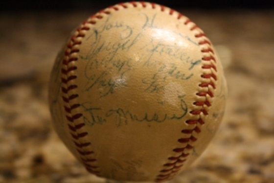 My Grandfather was given this ball in 1952 when he was a kid and sick in the hospital by Wilmer "Vinegar Bend" Mizell. My grandfather's father was a preacher at the church that Mizell and his family went to and when he heard that my grandfather was sick he got the 1952 team to sign a ball for him. The signatures on the ball are as follow: