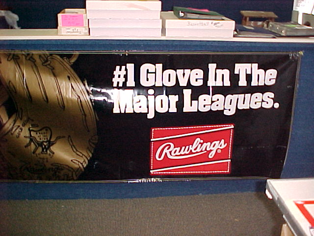 I was just wondering if anybody out there has ever seen a Rawlings "Heart of the Hide" glove banner, that measures about 8" long by 3' high. It's black in color with a big gold colored "Heart of the Hide" glove on the left side. On the right side it has in white writing: #1 Glove In The Major Leagues and then under that, it has the Rawlings Logo. Anyone out seen this banner?
