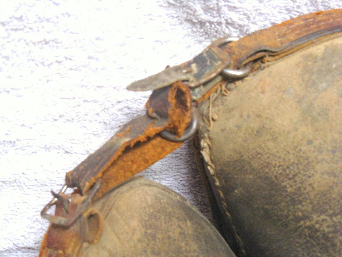 I removed the two rivets from the overlapped buckle strap and saw that the original pieces were all there so I sistered them together with a thin leather reinforcing piece underneath. The strap still looks pretty beat up but I thought I had to try to save it.
