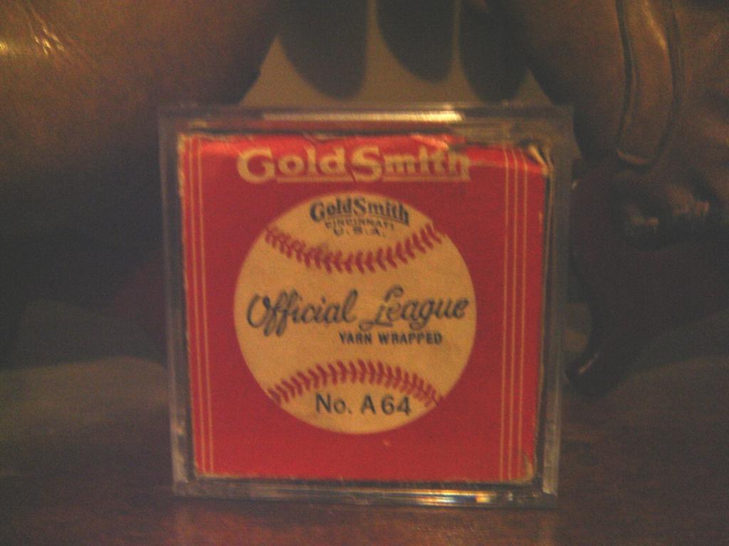 Last - is the Goldsmith Official League Ball Box. I was disappointed however, because there was no ball. This is one of my favorite pieces in my collection now. A small portion of the top lid is missing, but the bottom is intact - complete with the seal. I think this box is from the 30's from looking through the Vintage Baseballs Guide.