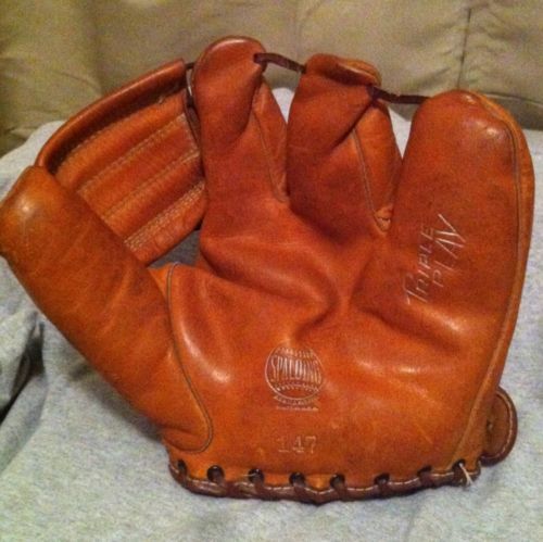 A really nice, minty Spalding Triple play 3 finger glove. This one had a great look and lots of silver! $65!