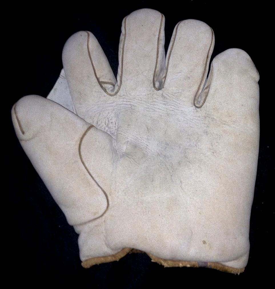 A Reach full web glove sold as a BO. No markings on the face, but otherwise nice white leather. The back displays well with the wool lining and great cloth patch.