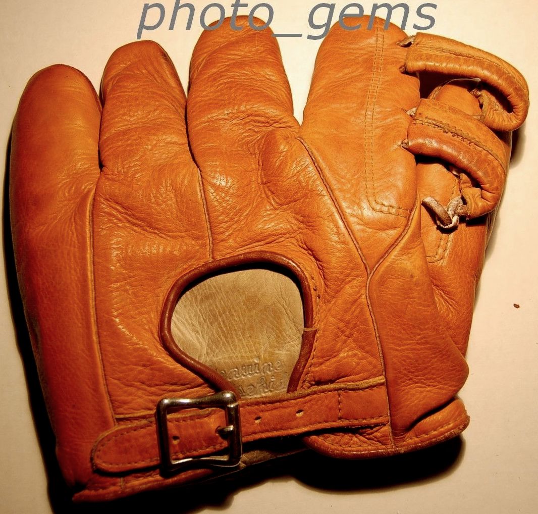 Just a brief word about the Chief Meyers Mitt. I was the winning bidder, coming out of glove collection add-ons hibernation to go after this one. It's a model I've wanted for as long as I've known enough to want it. Maybe 15 years or so. I received it yesterday and it's fine; great strong stamping and original lace. just a really nice example. The thing that I have to mention is that it's much darker than the photos suggest. Much darker. I like it, I'm keeping it, but I could easily see someone else getting really annoyed by the difference in color between the photographs and the actual mitt. It's clear all these seller's gloves had the same brightness to them (as pictured). I would have preferred a more accurate set of photos when considering it as something I wanted to go after. Just sayin'.