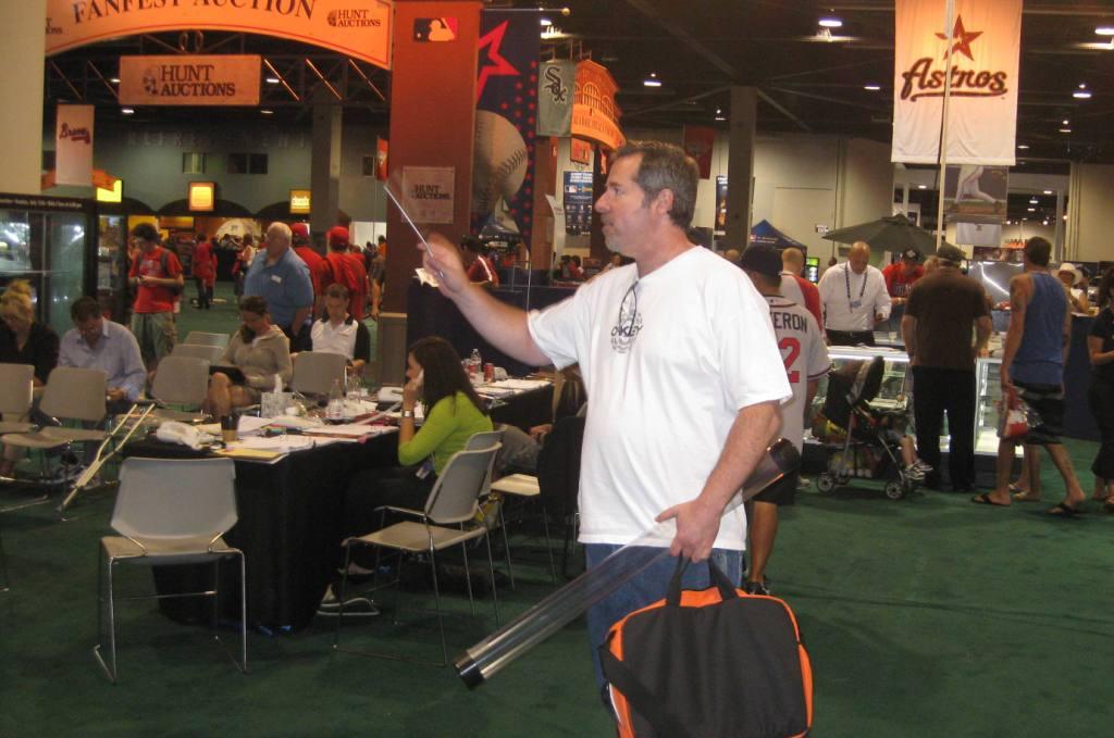 Once you're comfortable with the procedure, live bidding is definitely the way to go. Unlike absentee bidding, you can shift to alternate lots (if you are outbid). Plus, there is a true benefit to seeing the items in person. Auction Houses (even as esteemed as Hunt's) often fail to disclose certain flaws, and frequently over-grade items as well. To your point, that giant Display Glove was not nearly as nice in person, and other items were far better than described (like the early Uniform that Ryan snagged).
