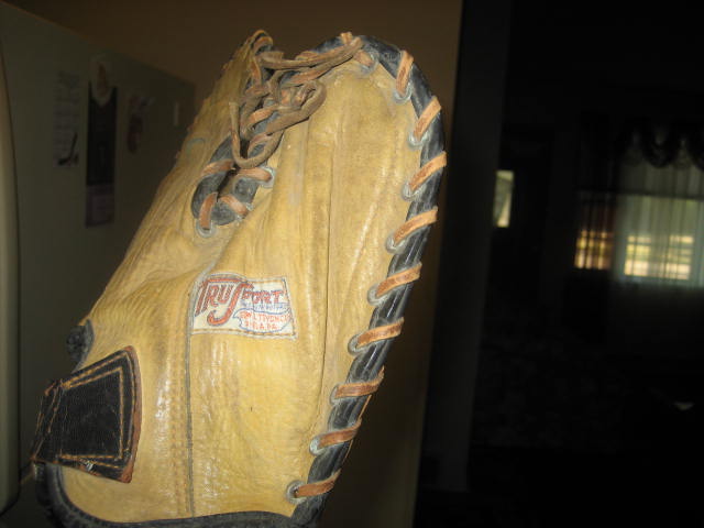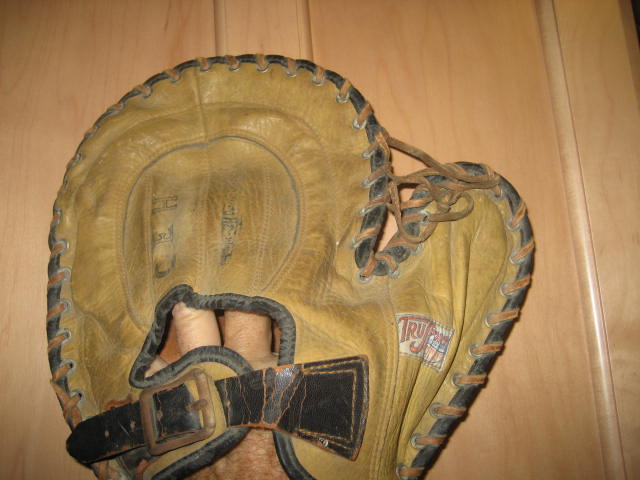 I have a Trusport vintage softball Mitt with a neat patch (ab 1 1/2 by 3/4). It is tannish background. Trusport ( in dark orange) sole distrubutors (in blue) Edw Tryon Co, Phila Pa (lt orange) See pics kwstriker@aol.com