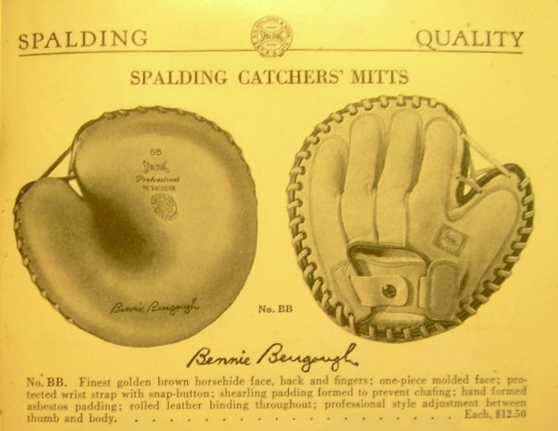 I liked the style of the "Benny Bengough" mitt the minute I picked it up from a local garage sale. It was well used and torn but the snap wrist strap was pretty cool. I eventually sold it but was always looking for a better example. Below is the ad from a 1929 Spalding catalog and a picture from John Graham's collection of the model BB.