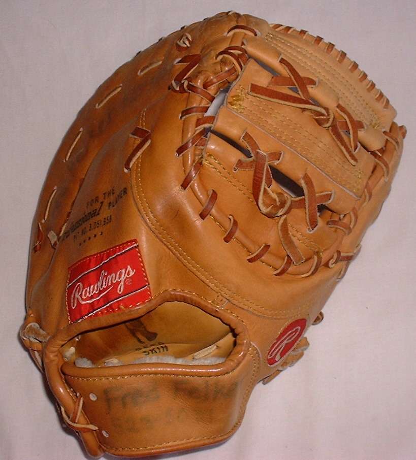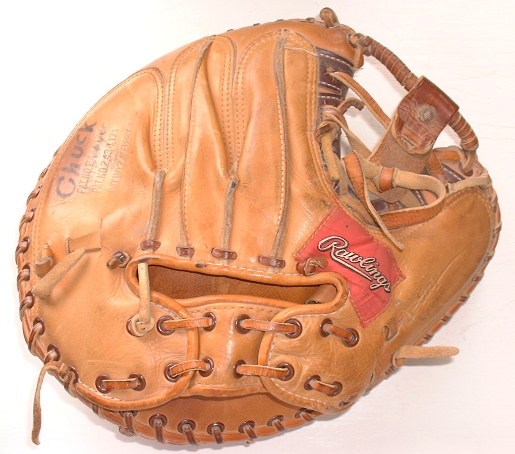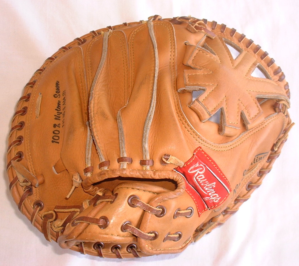 Rawlings imported gloves such as the model above were made by the Trion Corporation of Japan. Akio Aoki founded the company in 1959 as an importer of sporting goods and started a manufacturing business in 1967. Aoki developed many patents for Rawlings gloves and was instrumental in the design and manufacture of the newer Primo and REVO line from a Trion subsidiary plant in the Philipines. The Rawlings Primo gloves were high end Italian leather at $400 a pop.