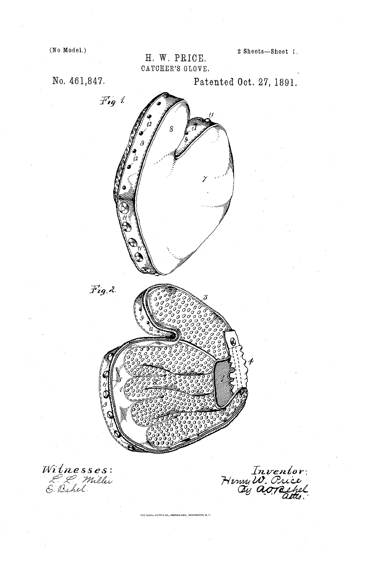 Henry Price also ventured into the new area of the padded catchers mitt that became popular circa 1890.