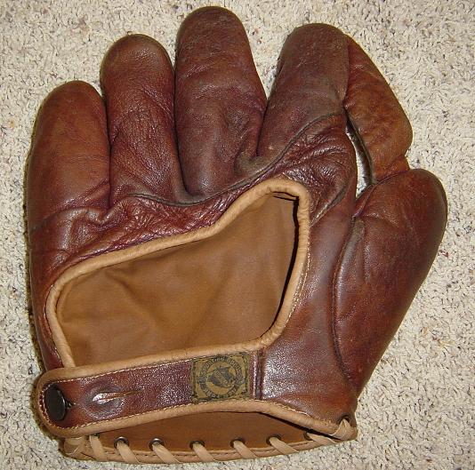Great info Mike! I make two of the gloves that you've shown above. The Price fingerless catcher's glove with pull tabs (great to have a name attached to this now, btw) that I make is a little different, not sure if it is earlier or later, but my model is more elaborate in it's stitching details. The other glove that I make is the light weight glove that has the button on the back. That glove has seen some action and has been modified. It originally came with a snap closure. Also, the "pull tabs" that you pointed out are actually leather strips that divide the fingers. They're shown lying flat in that photo which make them look like loops or pull tabs.