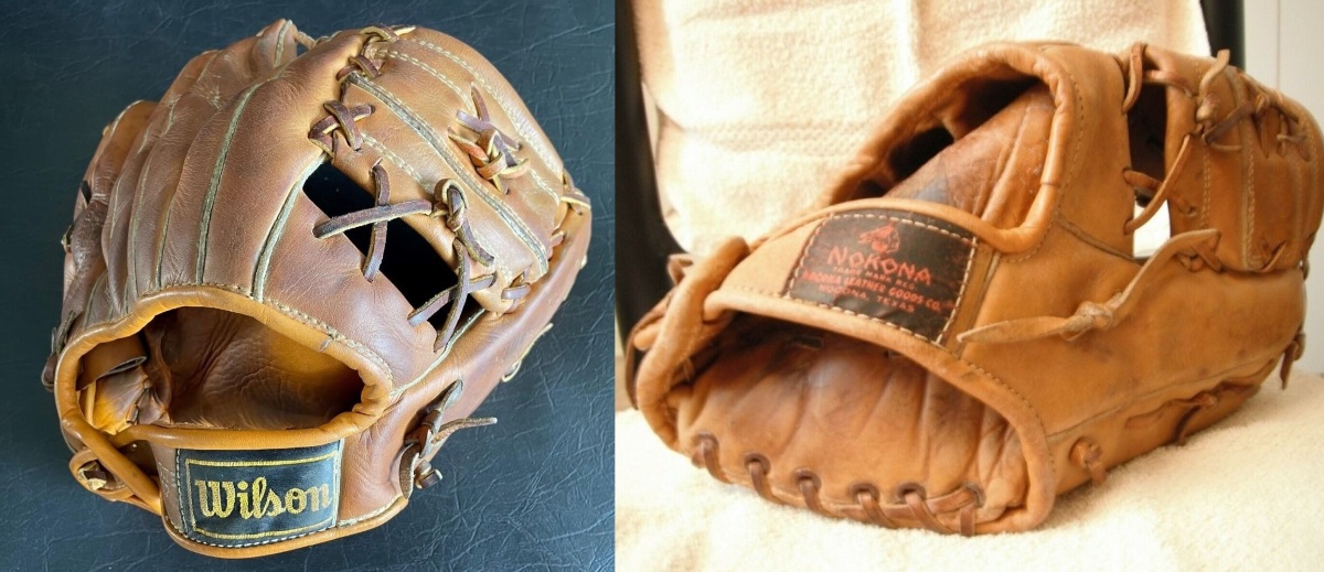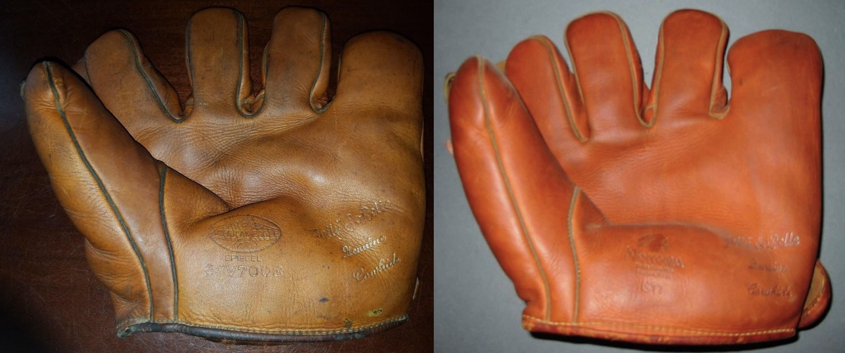 Below is a 1954 Spalding Phil Rizzutto model 1121 glove with X-anchored web.