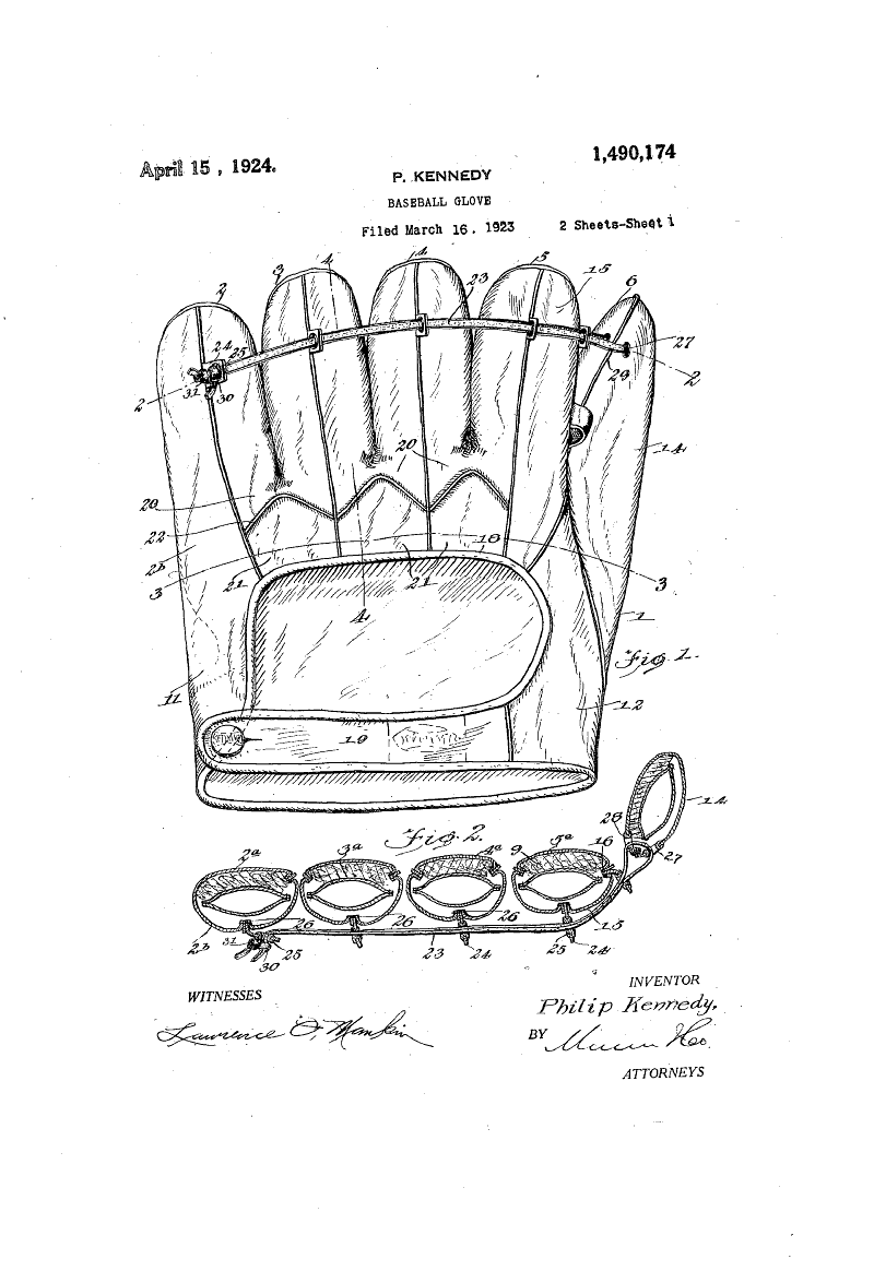 The baseballglovecollector.com website shows many variations of the Kennedy brother's designs during this period. As a group, the gloves are a highly popular and sought after baseball collectible. However, based on patent drawings, there are three models I cannot match with any examples. If anyone has one of these gloves, I would be interested in seeing a picture posted here.