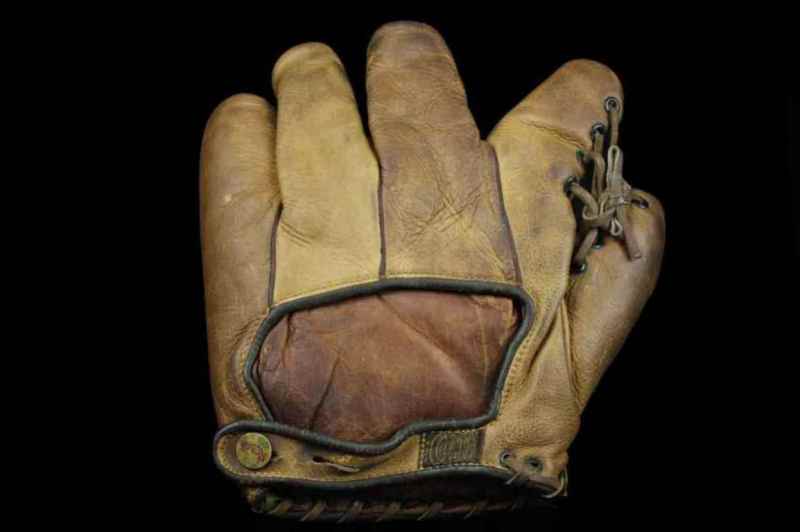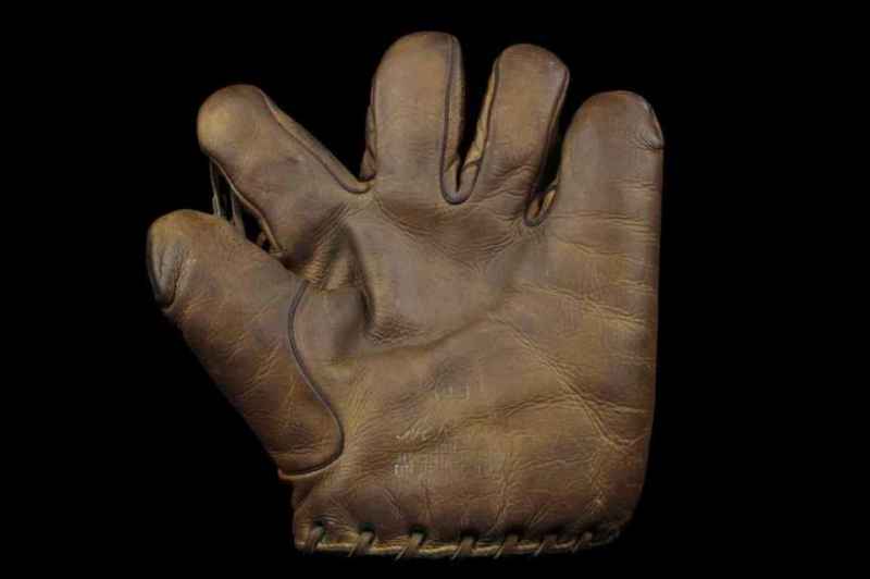 This early webless crescent glove is one of the finest known in the hobby. To have any manufacturers identification is a huge plus and this glove has a stunning cloth patch on the wrist strap.