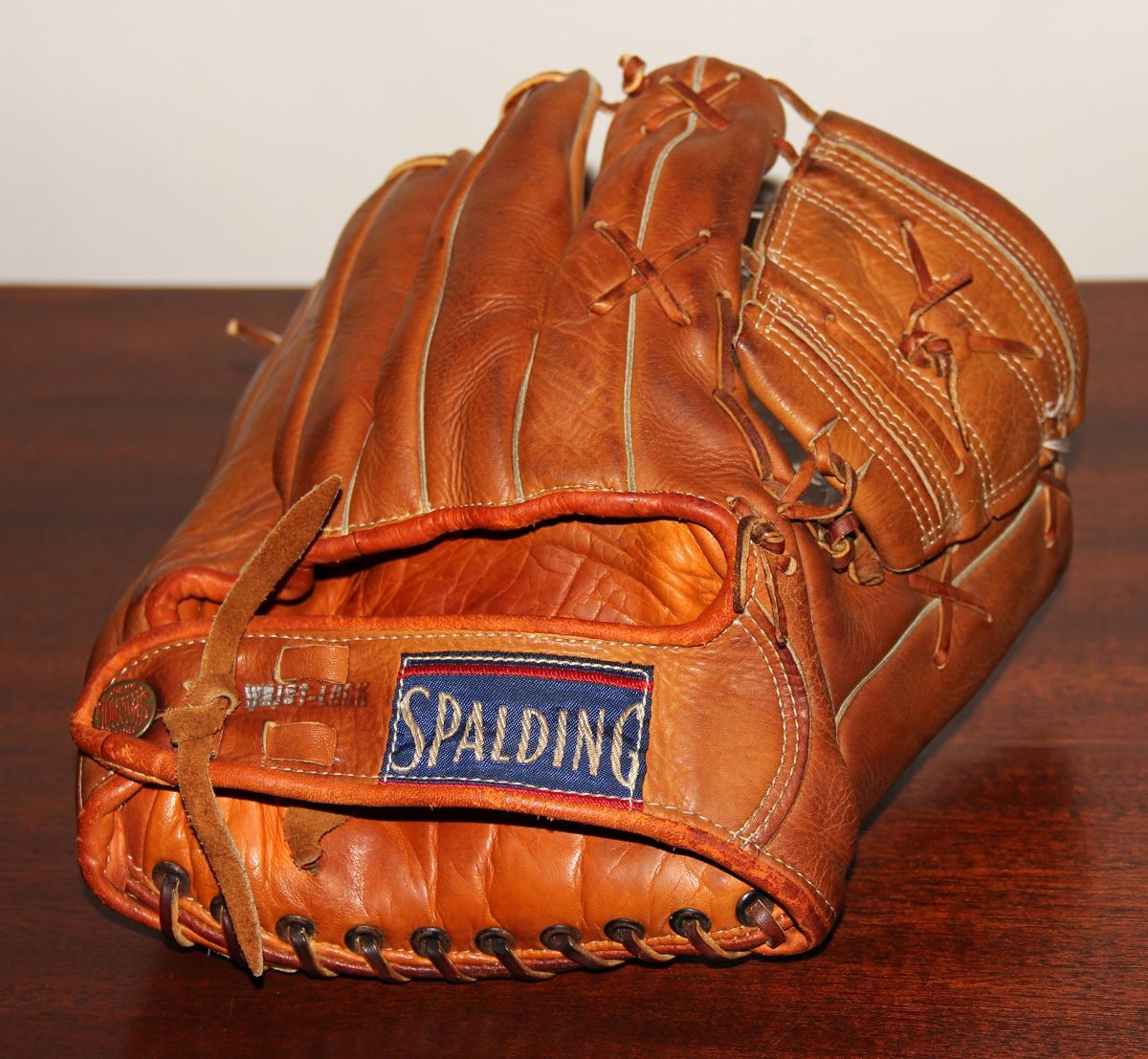 Below is a 1954-55 three finger Spalding model 1207 with X-anchored web.