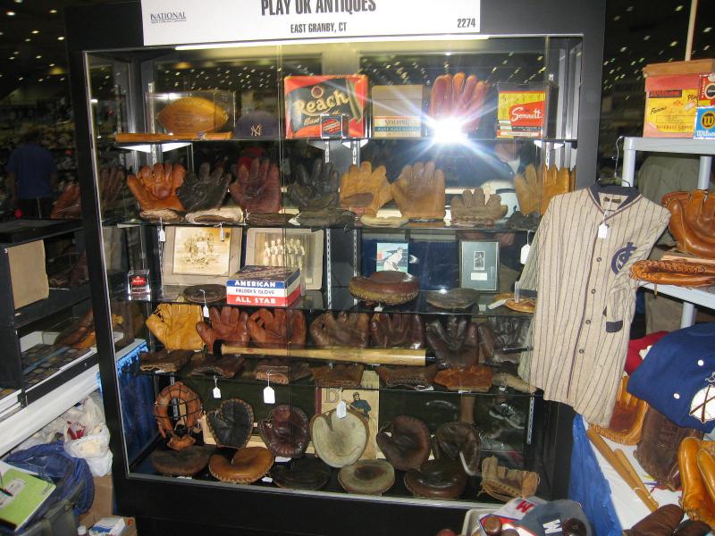 I will have booth #2649P or there abouts. Steve Reiferson who has done the National since 1982, has four booths in his name in the corporate pavilion. My friend Danny and I will share one of them. 4 tables. I won't have any gloves, but I will have my 1890s catcher's mask that has been on display at the Yogi Berra museum since 1998. And tons of other neat stuff.