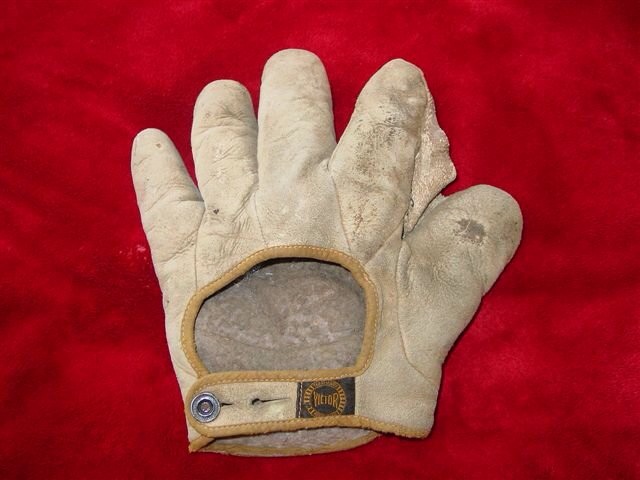 Here's a mitt recently on ebay. It was made by Fancy Goods of Canada and features a "Victor" cloth patch, crescent pad and remnants of a buckle web.