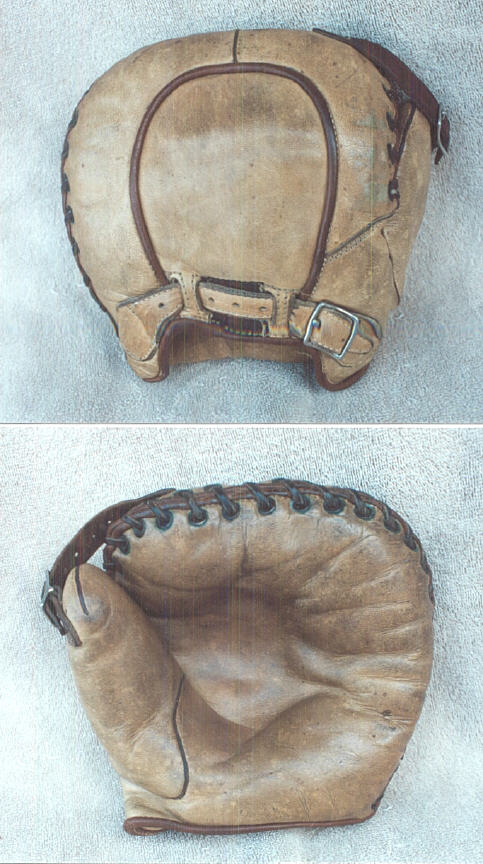 In contrast to this, is my favorite double patch model, the early "Bill Doak" Rawlings model. I love the "Rawlings" Shield design. There is a lot of information presented here in these two patches in a very neat and tidy way, all presented between the rolled leather piping of the narrow wrist strap.