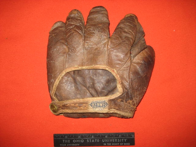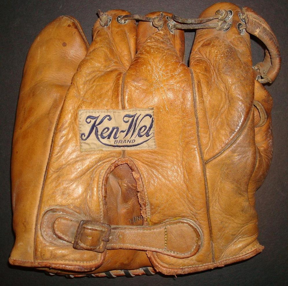 A KenWel glove recently sold on ebay may be the very elusive first generation of the "Dazzy Vance" style glove. Most Vance gloves have the diagonal seams on the back of the finger stalls. Below is an ad for a "Vance" glove that has the "peaked" back seams only found on the very early models.