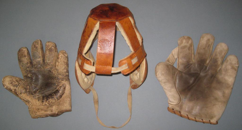 Here are the three I carried back, an AJ Reach webless with wide cloth label, a Stall & Dean spoked football helmet with griffin logo, and a large white TE Wilson 1" web with large cloth label.