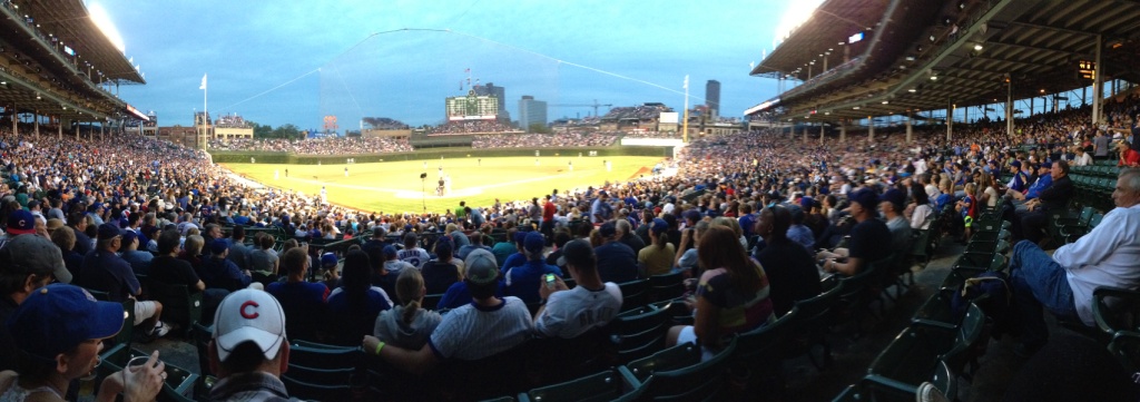 Oh ya, here are is a panoramic picture from our seats at the Cubs game (great job William!). The ball that the Cubs shortstop dropped (batted at!) that would have been the game winning out was one of the worst plays I have ever seen by a shortstop. That sort of added to the Cubbie mystique of the night.