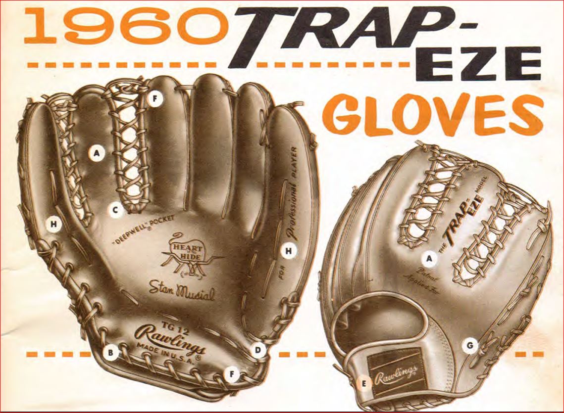 This continued on through the MMP model of 1959. In 1960 Rawlings redesigned the model MMP and eliminated the pinky "corporal stripes". The model MMP also featured a new pocket lacing and defined heel break.