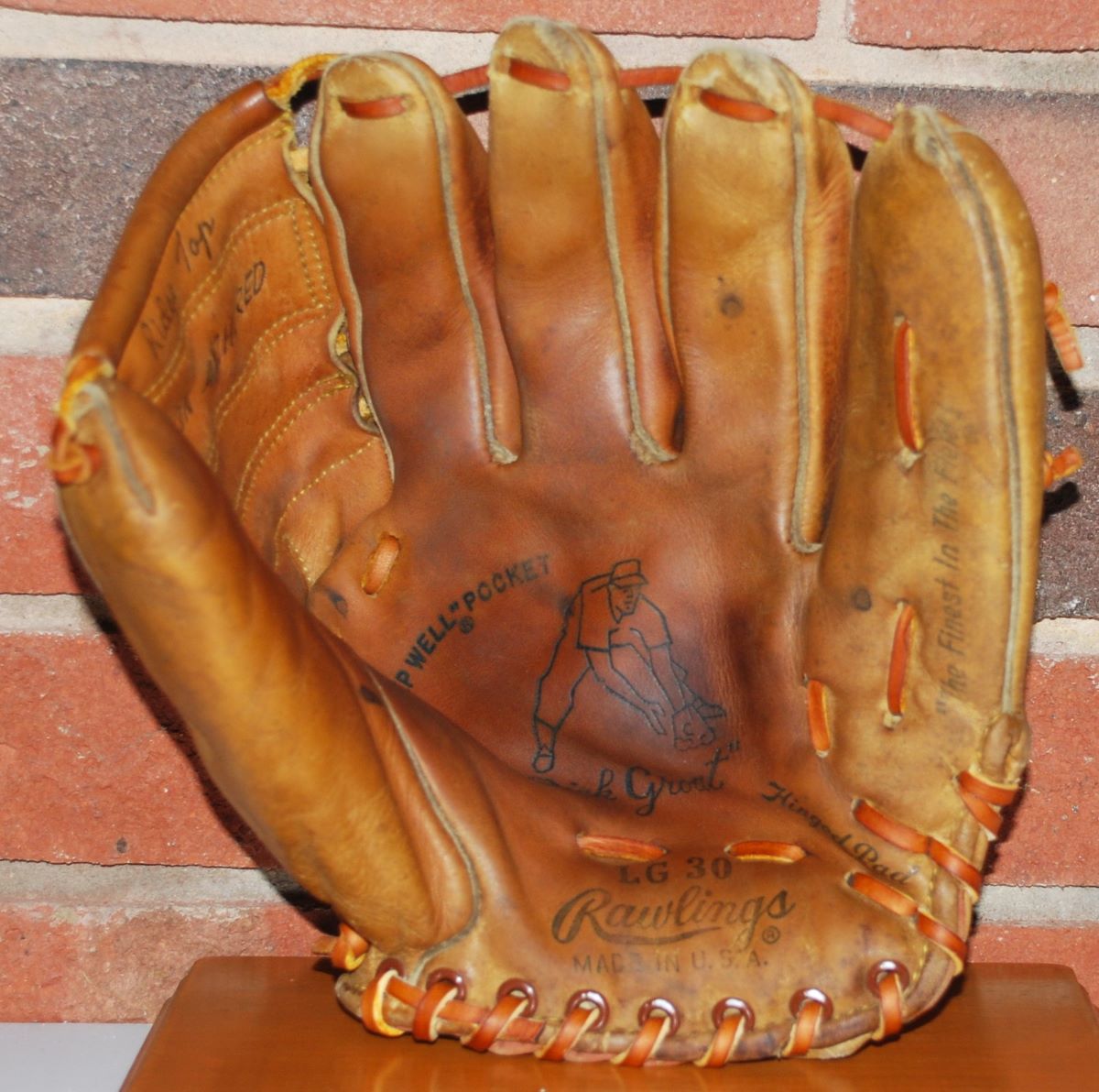 The "corporal stripes" were to reappear on the 1970-72 XPG6 Mantle models. Note that the "Made IN U.S.A." heel stamp of the earlier gloves was changed to "U.S.A." in 1970.